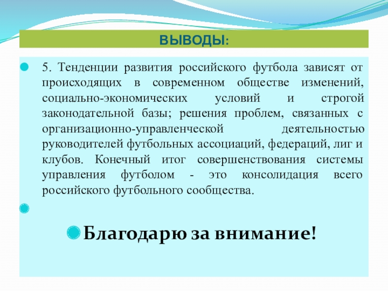 5. Тенденции развития российского футбола зависят от происходящих в современном обществе