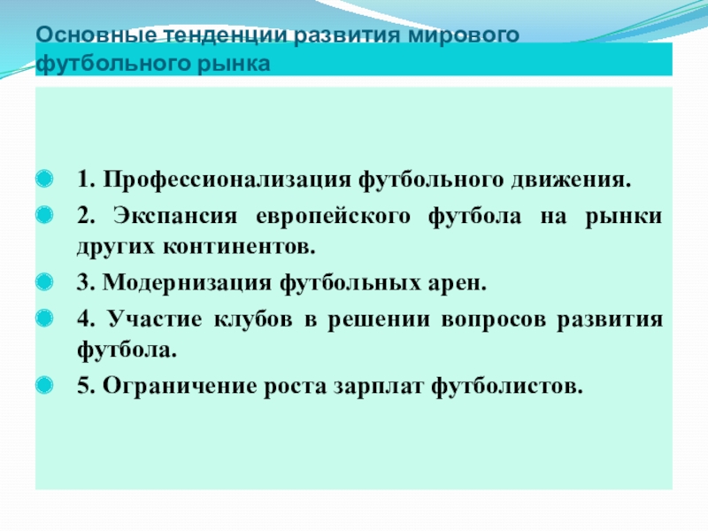 Слайд 8Основные тенденции развития мирового футбольного рынка