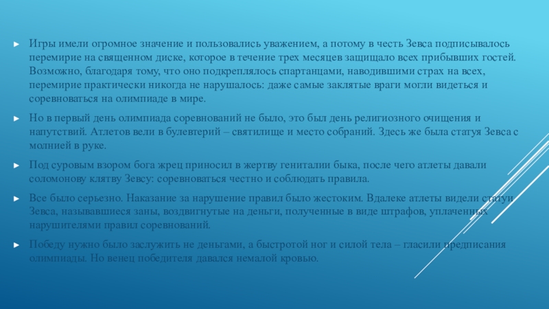 Слайд 6Игры имели огромное значение и пользовались уважением, а потому в честь