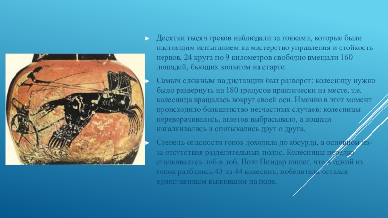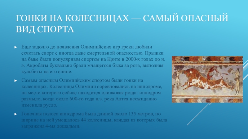 Слайд 16Гонки на колесницах — самый опасный вид спорта