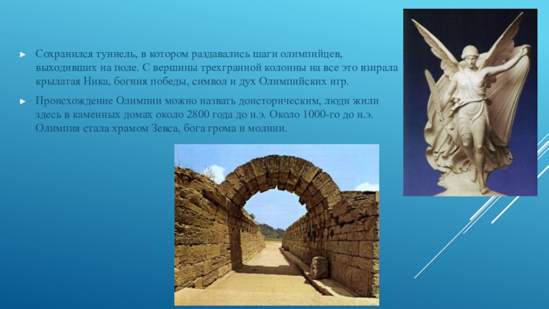 Слайд 4Сохранился туннель, в котором раздавались шаги олимпийцев, выходивших на поле. С