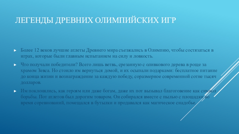 Слайд 31Легенды древних Олимпийских игр