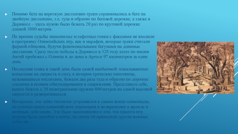 Слайд 30Помимо бега на короткую дистанцию греки соревновались в беге на двойную