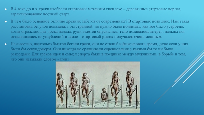 Слайд 29В 4 веке до н.э. греки изобрели стартовый механизм гисплекс –