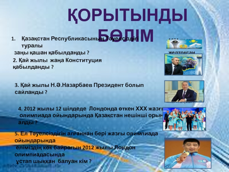 5. Ел Тәуелсіздігін алғаннан бері жазғы олимпиада ойындарында