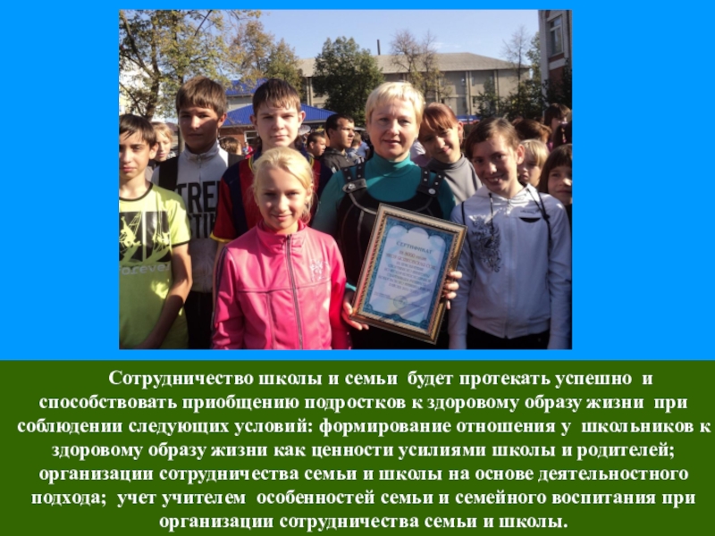 Слайд 18Сотрудничество школы и семьи будет протекать успешно и способствовать приобщению подростков