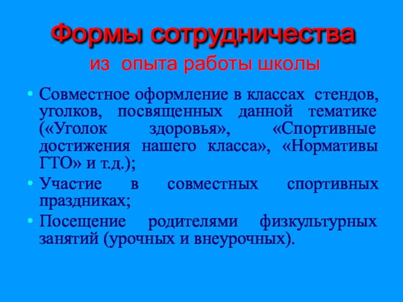 Посещение родителями физкультурных занятий (урочных и внеурочных).