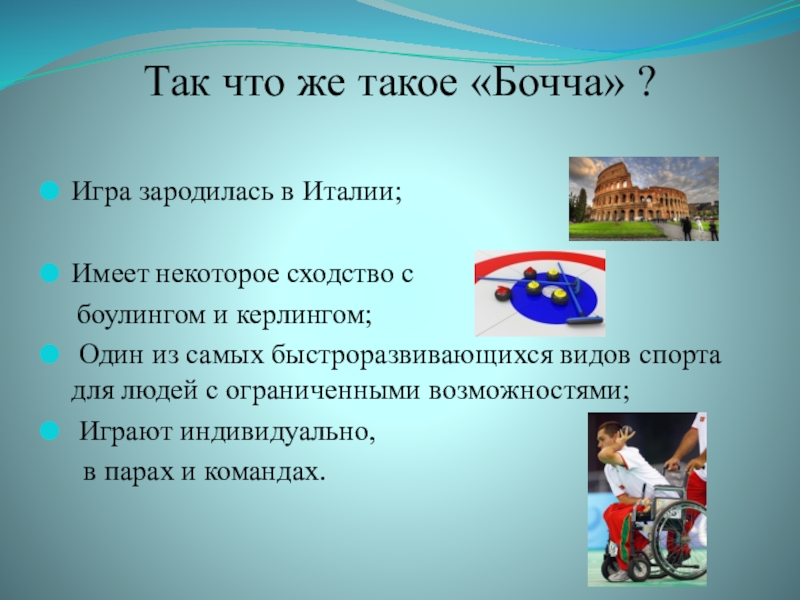 Слайд 1Игра «бочча» как средство формирования физических качеств и коммуникативных умений у