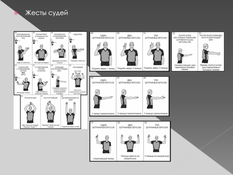 Мячом играют только руками. Бежать с мячом, не ударяя им в пол, преднамеренно бить по нему ногой, блокировать любой частью ноги или бить по нему кулаком является нарушением. Случайное же соприкосновение или касание мяча стопой или ногой не является нарушением.