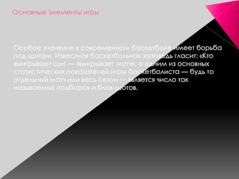 Особое значение в современном баскетболе имеет борьба под щитом.