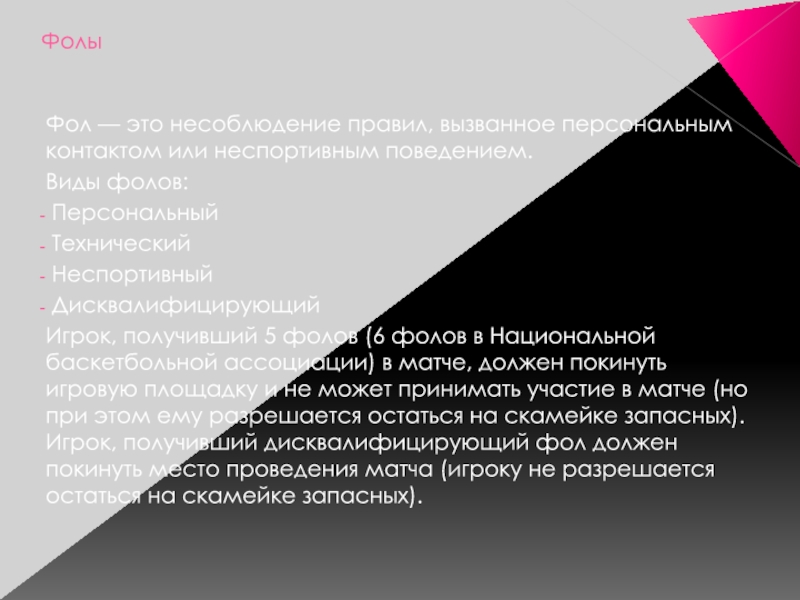 Фол — это несоблюдение правил, вызванное персональным контактом или неспортивным поведением.