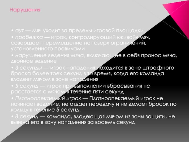 • нарушение ведения мяча, включающее в себя пронос мяча, двойное ведение