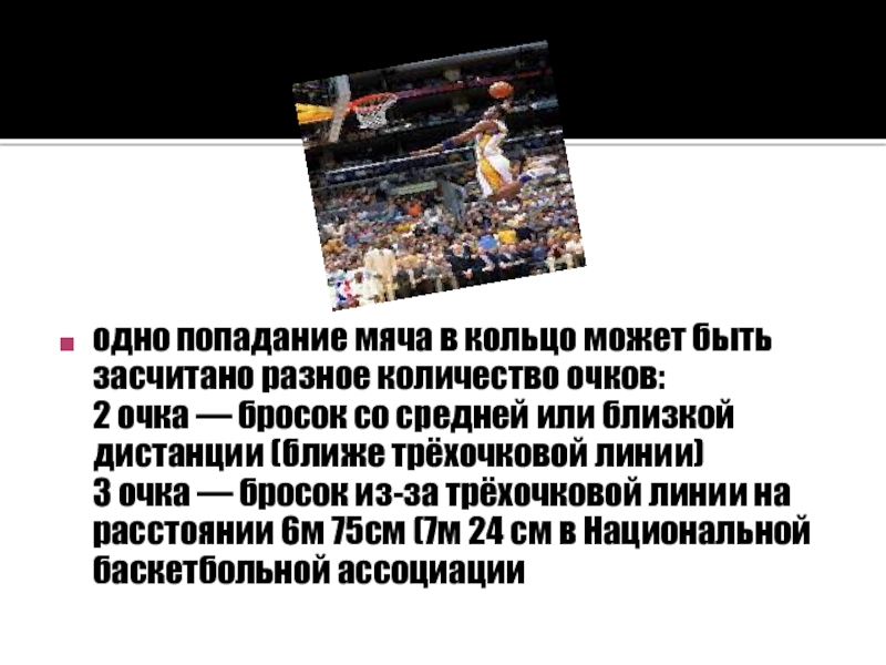 Слайд 11одно попадание мяча в кольцо может быть засчитано разное количество очков: