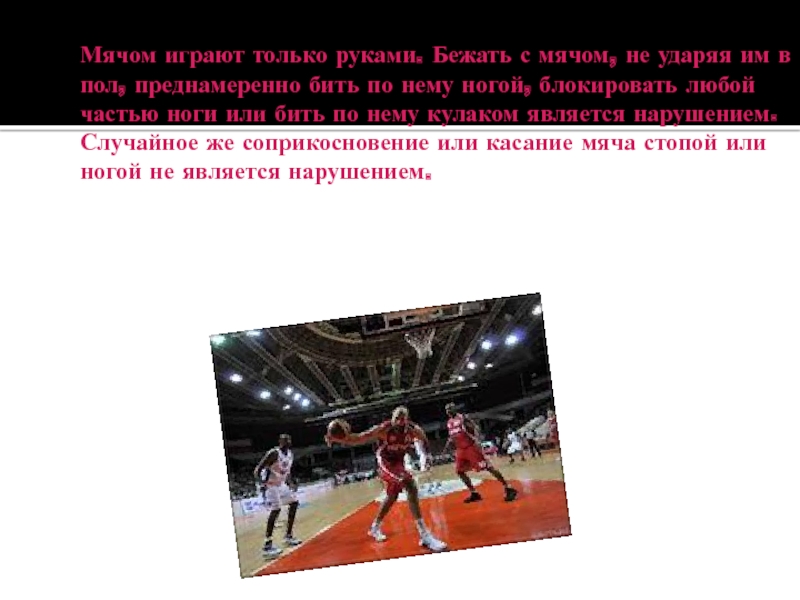 Слайд 8Мячом играют только руками. Бежать с мячом, не ударяя им в
