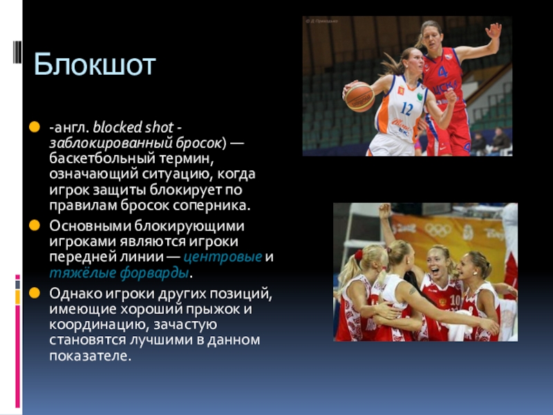 -англ. blocked shot - заблокированный бросок) — баскетбольный термин, означающий ситуацию, когда игрок