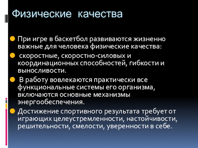 При игре в баскетбол развиваются жизненно важные для человека физические