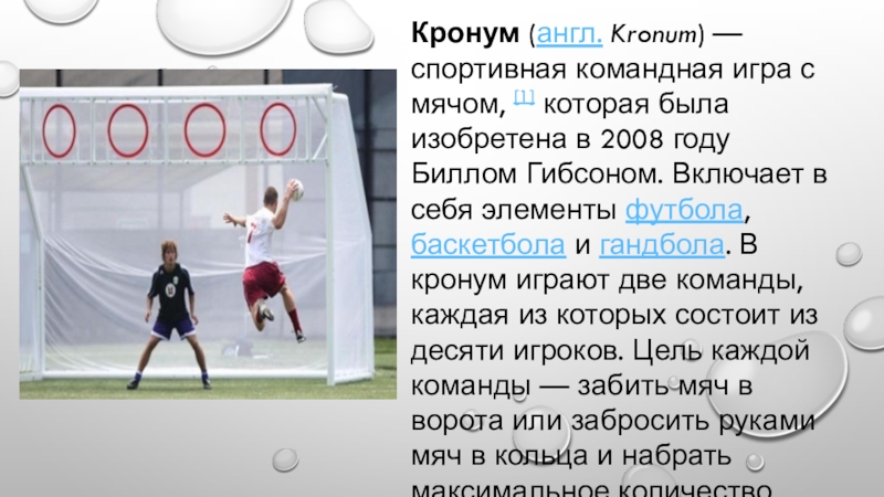 Слайд 12Кронум (англ. Kronum) — спортивная командная игра с мячом, [1] которая была