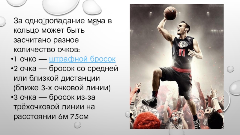 Слайд 8За одно попадание мяча в кольцо может быть засчитано разное количество