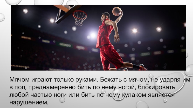 Слайд 6Мячом играют только руками. Бежать с мячом, не ударяя им в