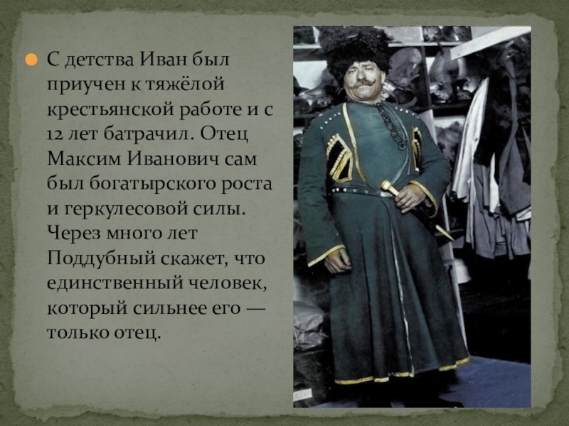 Золотоношского уезда Полтавской губернии (ныне Чернобаевский район, Черкасская область, Украина) в 1871 году в семье потомственного запорожского казака Максима Ивановича Поддубного.