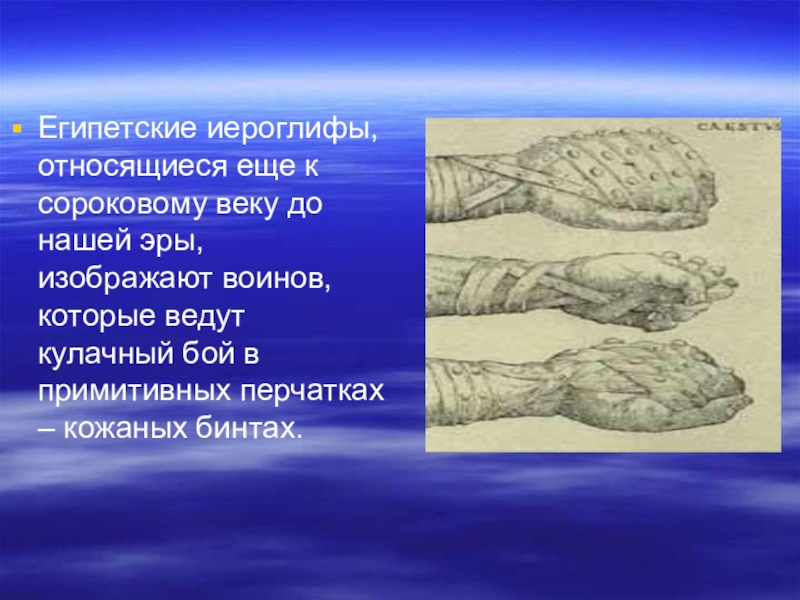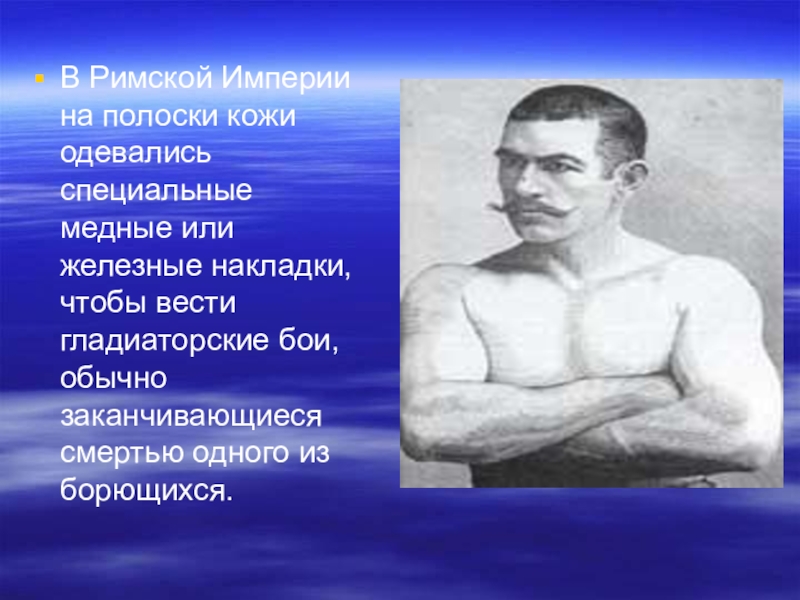 воинов, которые ведут кулачный бой в примитивных перчатках – кожаных бинтах.