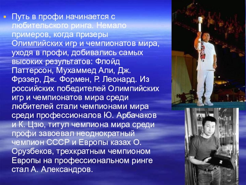 Слайд 14Путь в профи начинается с любительского ринга. Немало примеров, когда призеры