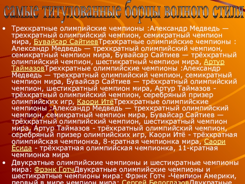 самые титулованные борцы волного стиля