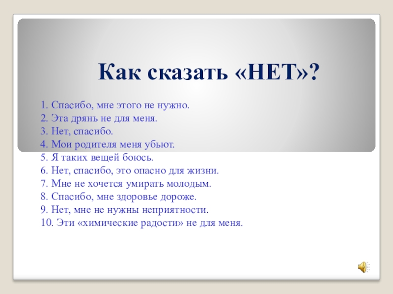 (т.е. говорить «НЕТ»);