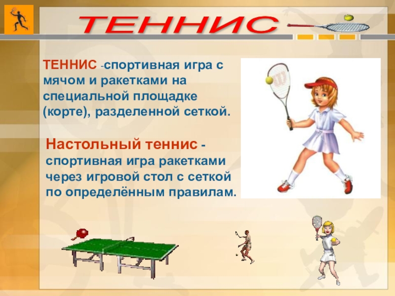 Настольный теннис -спортивная игра ракетками через игровой стол с сеткой по определённым правилам.