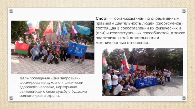 Цель проведения «Дня здоровья» - формирование духовно и физически здорового человека, неразрывно связывающего свою судьбу с будущим родного края и страны.