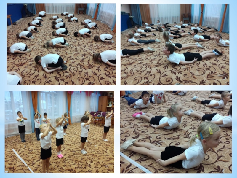 Что включает в себя занятие Йогой для детей?Динамической комплекс Асан, вытягивающий позвоночник и включающий в работу основную