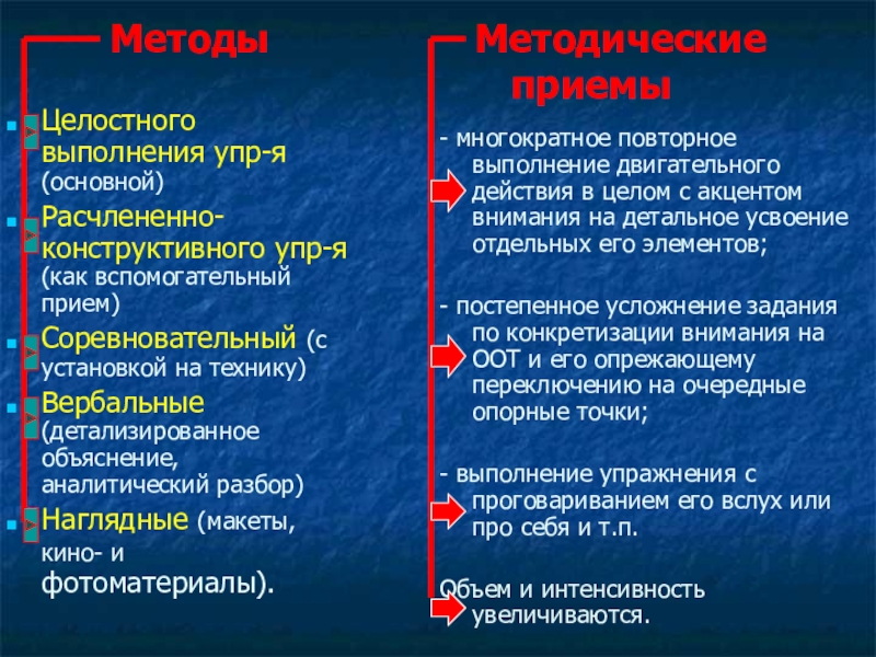 - многократное повторное выполнение двигательного действия в целом с акцентом внимания на детальное усвоение отдельных его элементов;