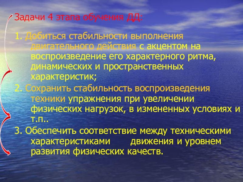 - овладеть общим ритмом движения;