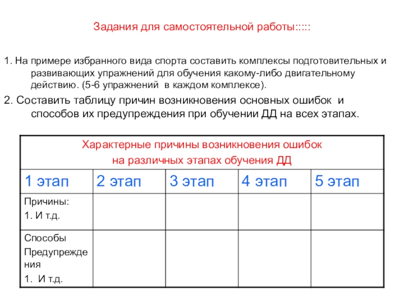 4. Варьировать количество задач этапа в зависимости от координационной сложности изучаемого двигательного действия