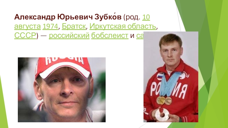 Слайд 3Александр Юрьевич Зубко́в (род. 10 августа 1974, Братск, Иркутская область, СССР) —
