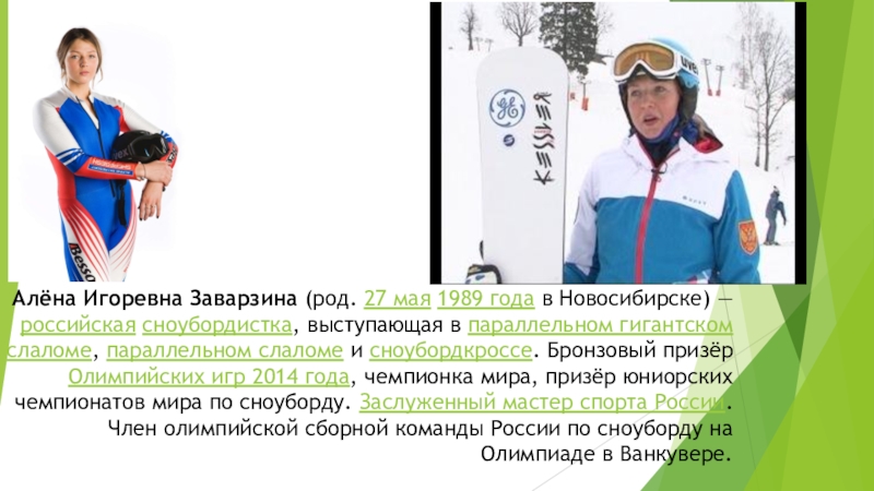 Слайд 20Алёна Игоревна Заварзина (род. 27 мая 1989 года в Новосибирске) — российская
