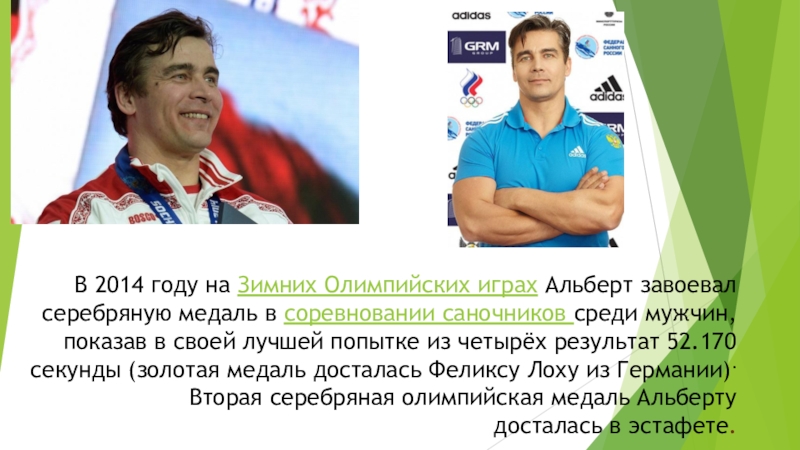 Слайд 16В 2014 году на Зимних Олимпийских играх Альберт завоевал серебряную медаль
