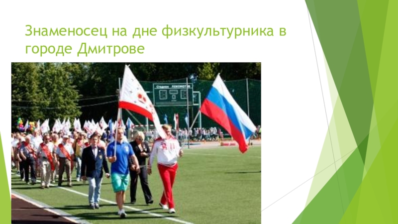 Слайд 9Знаменосец на дне физкультурника в городе Дмитрове