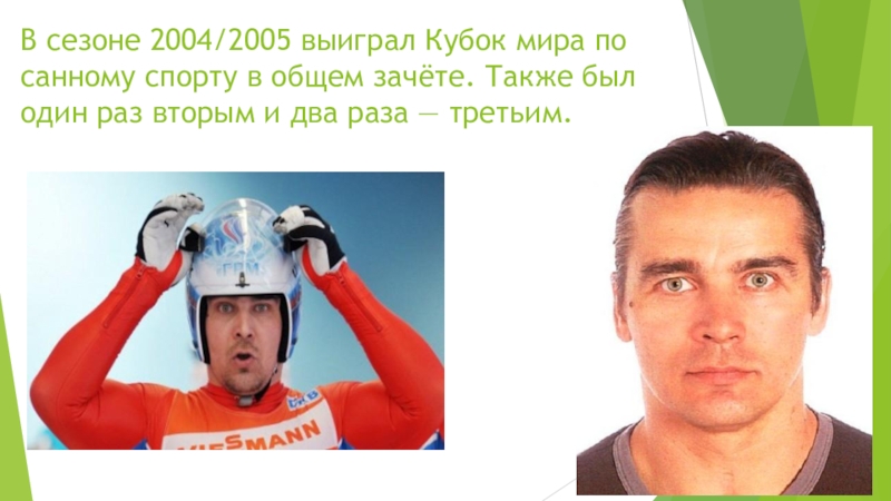 Слайд 15В сезоне 2004/2005 выиграл Кубок мира по санному спорту в общем