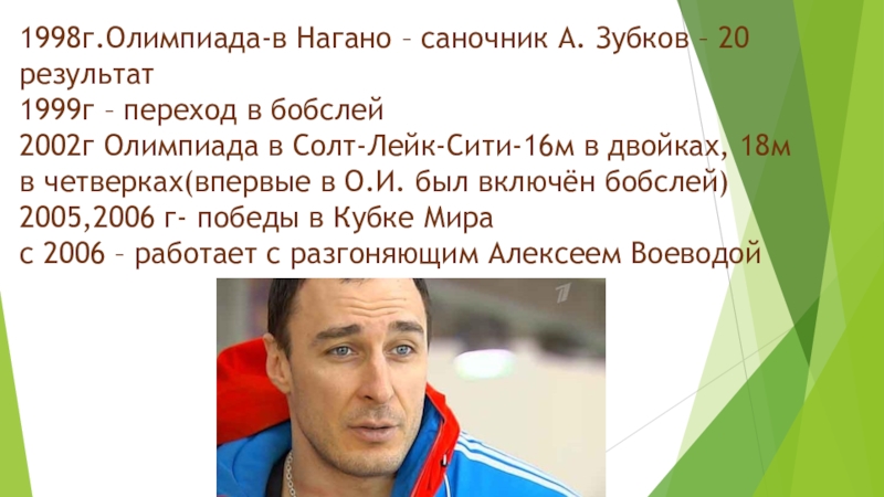 Слайд 101998г.Олимпиада-в Нагано – саночник А. Зубков – 20 результат