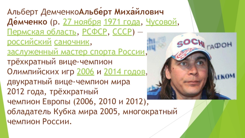 Слайд 13Альберт ДемченкоАльбе́рт Миха́йлович Де́мченко (р. 27 ноября 1971 года, Чусовой, Пермская