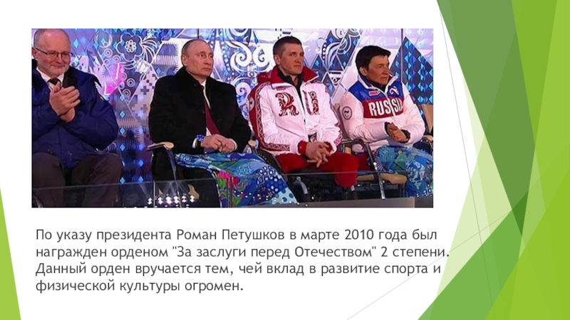 Слайд 27По указу президента Роман Петушков в марте 2010 года был награжден