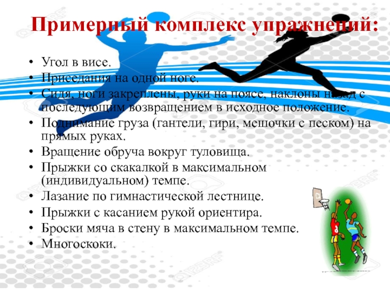 Слайд 19Примерный комплекс упражнений:
