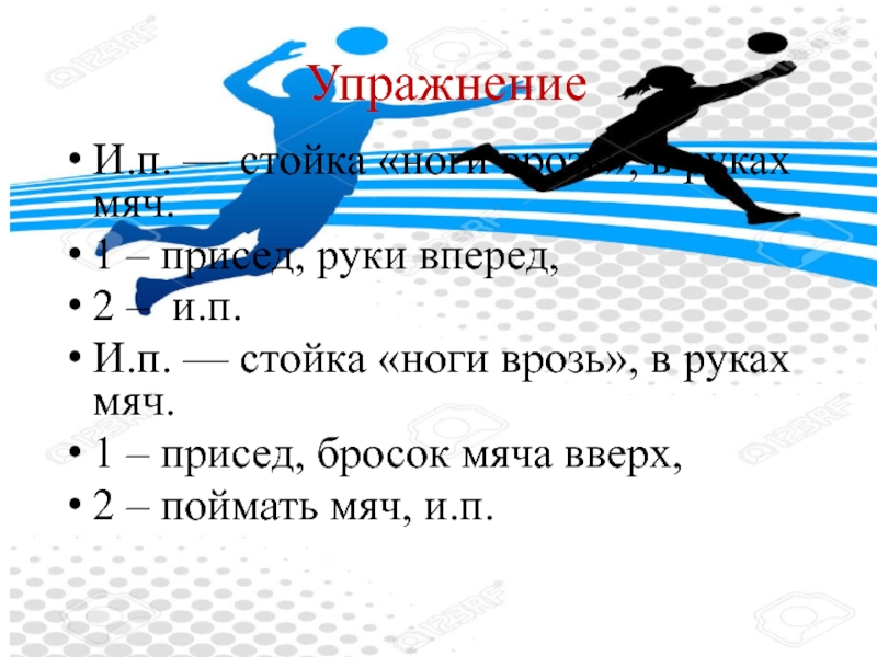 1 – присед, бросок мяча вверх,
