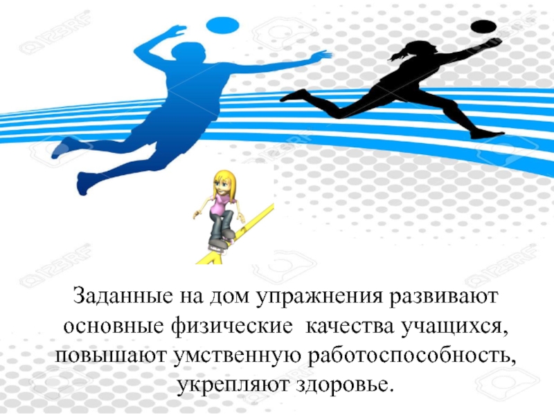 Заданные на дом упражнения развивают основные физические качества учащихся, повышают умственную