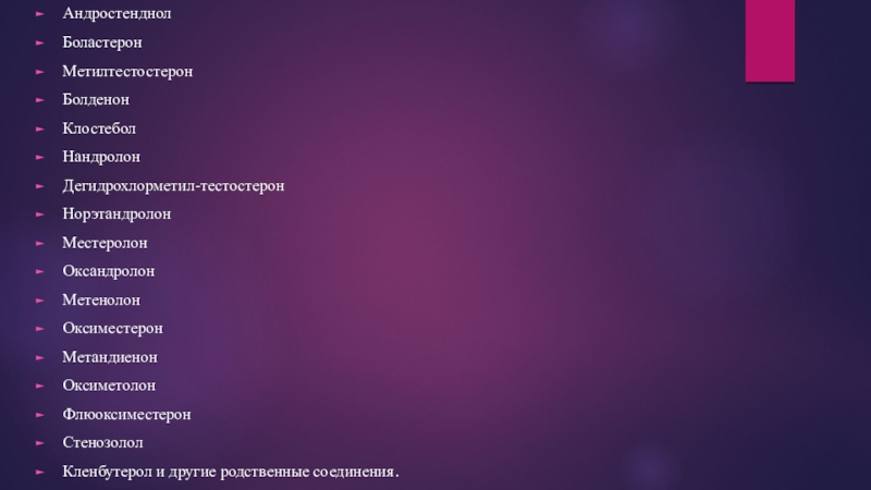 Нандролон, тетрагидрогестринлн, станозолол, андростенедион