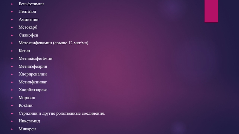 Амфетамины, эфедрин, кокаин, экстази, сальбутамол, кофеин