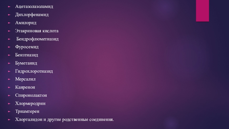 Побочный эффект: Обезвоживание, нарушение обмена веществ, головокружение, судороги, головные боли, тошнота, пониженное давление, повреждение почек.