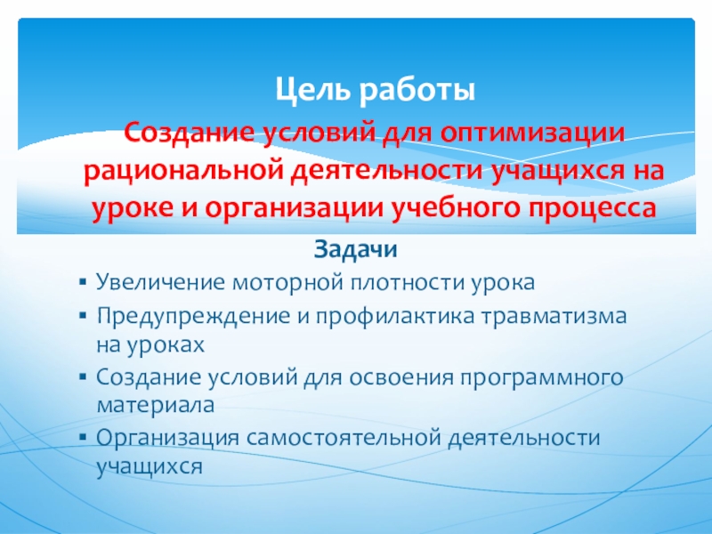 Создание условий для оптимизации рациональной деятельности учащихся на уроке и организации учебного процесса