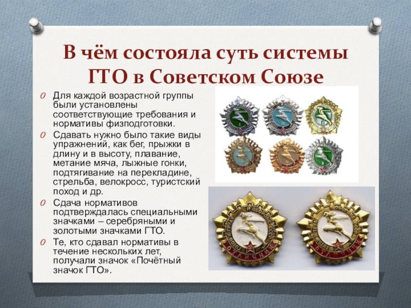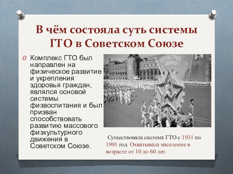 Слайд 3В чём состояла суть системы ГТО в Советском Союзе